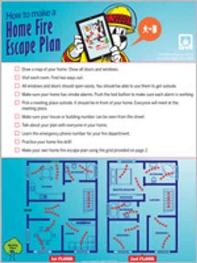 Fire can spread rapidly through your home, leaving you as little as one or two minutes to escape safely once the smoke alarm sounds. A closed door may slow the spread of smoke, heat and fire. Install smoke alarms in every sleeping room and outside each separate sleeping area. Install alarms on every level of the home. Pull together everyone in your household and make a plan. Walk through your home and inspect all possible exits and escape routes. Households with children should consider drawing a floor plan of your home, marking two ways out of each room, including windows and doors.